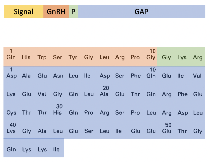 The remaining peptide= GAP (GnRH Associated Peptide), which is 56 aa long. GAP’s function= maybe prolactin secretion??