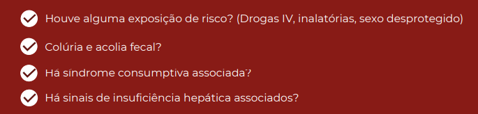 Manejo (Step 2): Solicitar painel sorológico viral agudo (HBsAg, Anti-HBc IgM, Anti-HCV). Deve-se notificar a vigilância epidemiológica. O tratamento na fase aguda é geralmente de suporte, monitorando o INR para detectar precocemente sinais de insuficiência hepática fulminante (coagulopatia).