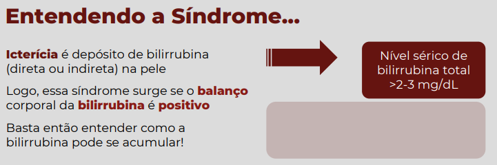 Manejo (Step 2): A detecção clínica de icterícia exige a solicitação imediata do fracionamento de bilirrubinas (Direta vs. Indireta) para guiar o raciocínio entre etiologias pré-hepáticas (hemólise), hepáticas (hepatite) ou pós-hepáticas (obstrução).
