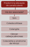 Manejo (Step 2): Não há terapia medicamentosa curativa; o ácido ursodesoxicólico pode melhorar exames bioquímicos mas não altera mortalidade. O manejo foca no tratamento de complicações (colangite, deficiência de vitaminas lipossolúveis) e vigilância para Colangiocarcinoma, que tem incidência aumentada nesses pacientes.