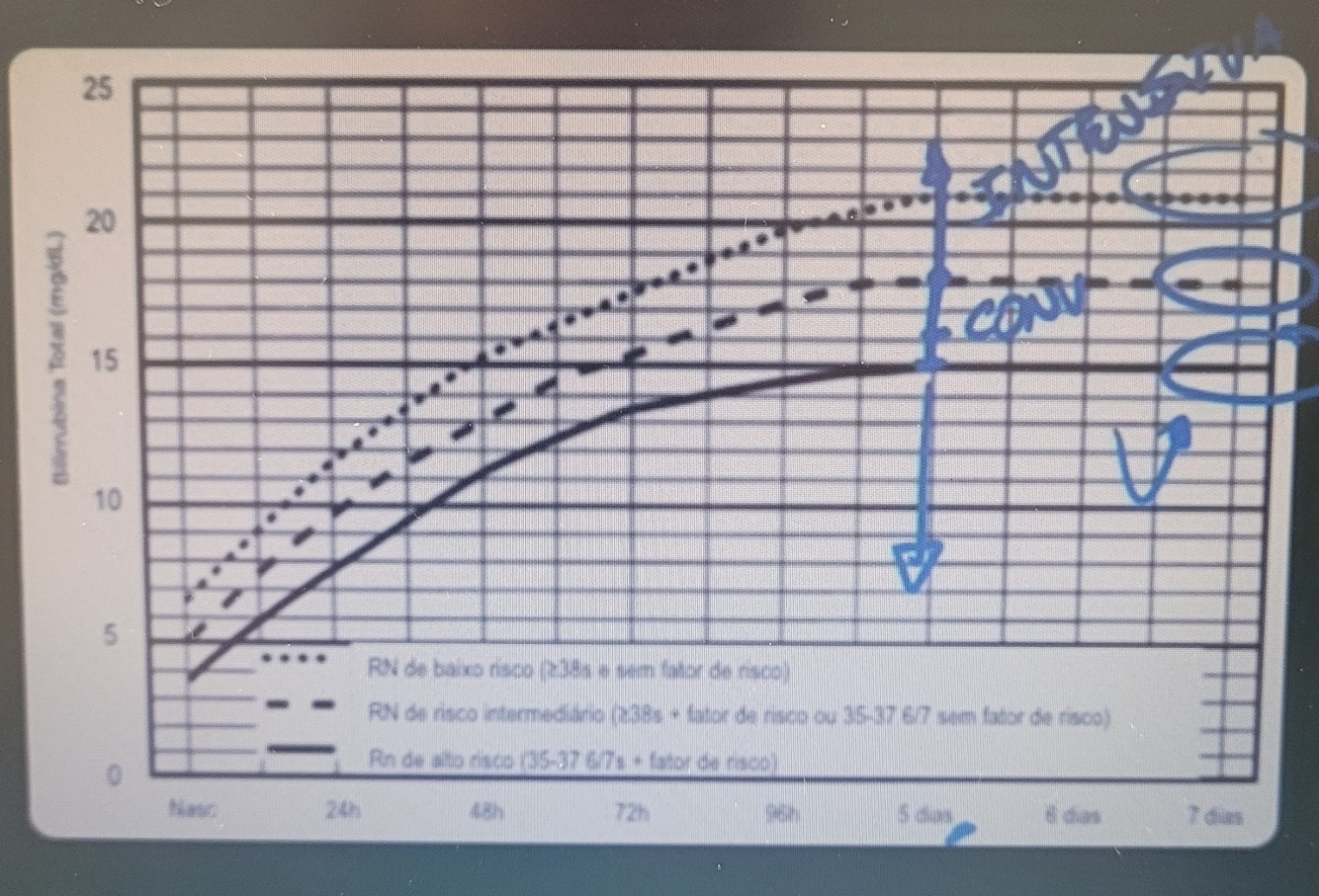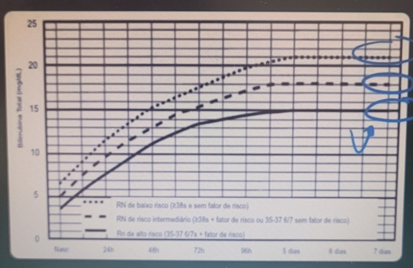 Os mesmo critérios para a fototerapia. PORÉM, BATEU NA LINHA DO GRÁFICO OU ESTÁ ACIMA, INDICA EXANGUINEO TRANSFUSÃO