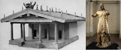 Temple of Minerva and Sculpture of Apollo -Veii, near Rome, Italy -Master Sculptor Vulca -terra cotta sculpture; original temple of wood, mud brick, or tufa -510-500 B.C.E.