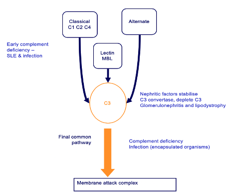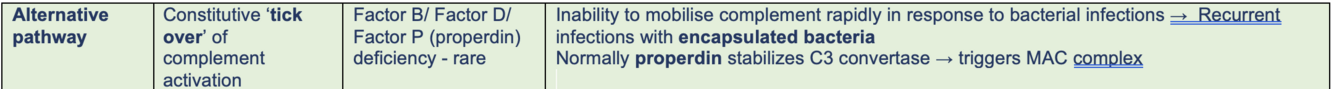 Properdin (Factor P) deficiency → can’t stabilise C3 convertase → no MAC