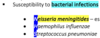 What type of bacteria are people with Complement deficiencies more susceptible to?