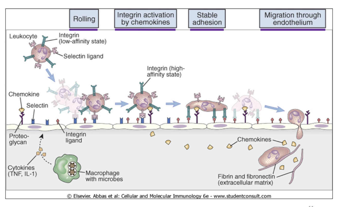 Le lien entre le lymphocyte et les récepteurs exprimés lors de la réponse inflammatoire est ____