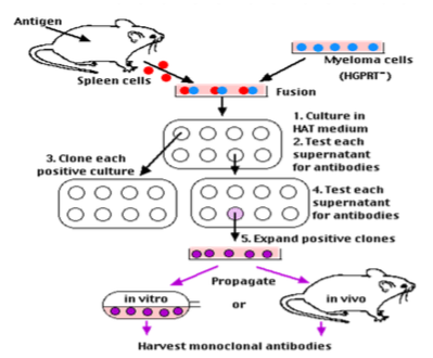 Monoclonal antibodies: synthesized by a population of identical B lymphocytes in a cell culture all producing antibodies to only one epitope; it’s a homogenous antibody population that all recognize tehs ame epitope.
