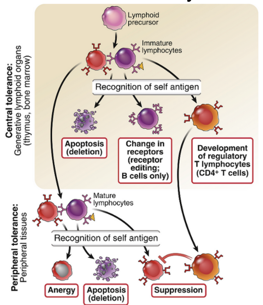 this is then followed by some response to the environment such as injury and APC activation causing self reactive t cells to recognize self Ag and have efector response to self tissue = autoimmunity