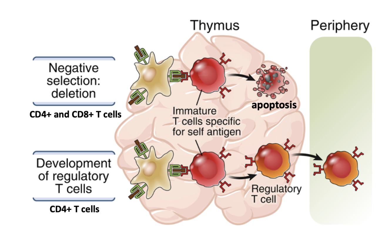occurs at the thymus: negative selection or development of t regulatory cells