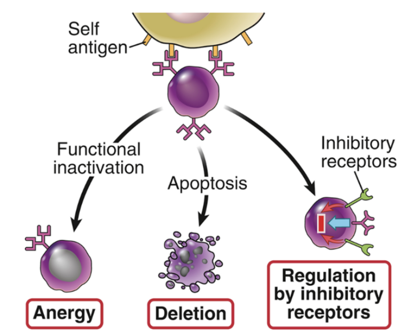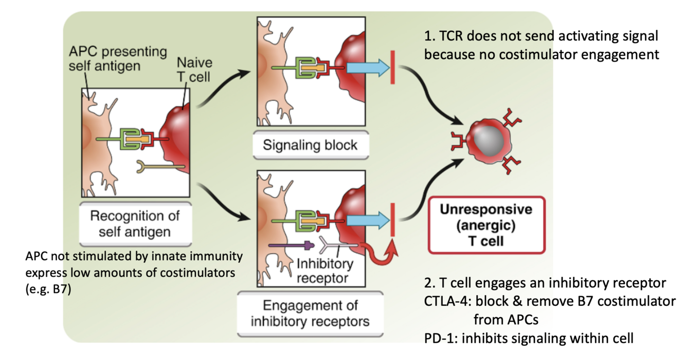 t cell engages APc with self Ag, no costimulators present= activation of apop mechanisms without these