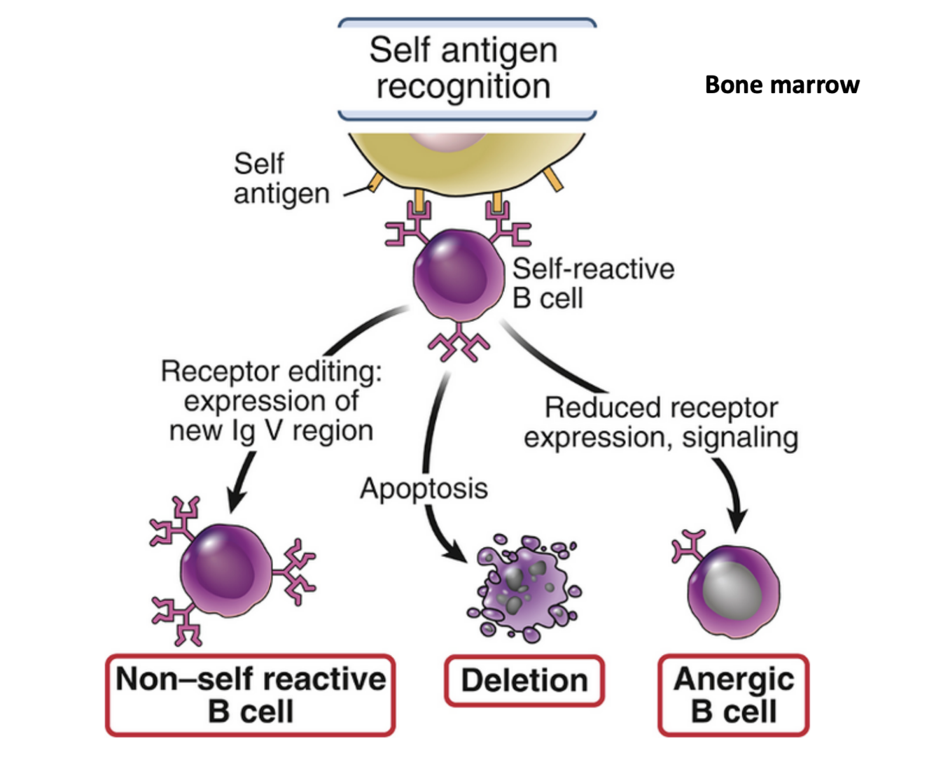 Principal mechanisms of central B lymphocyte tolerance