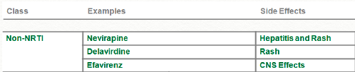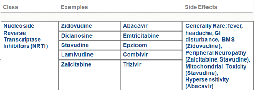 What are the examples and side effects of Nucleoside Reverse Transcriptase inhibitors (NRTI)?