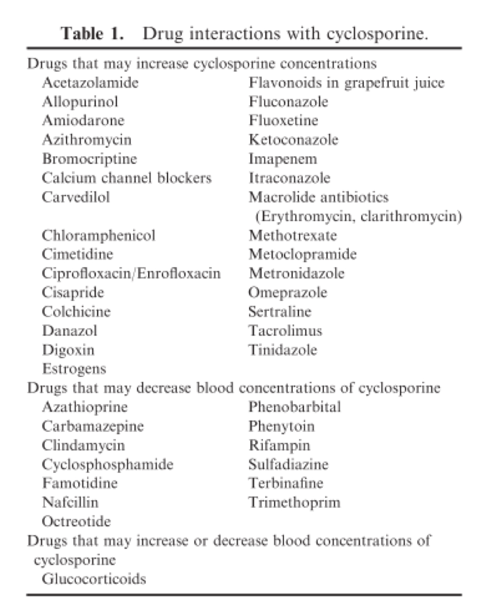 Cyclosporine drug interactions: