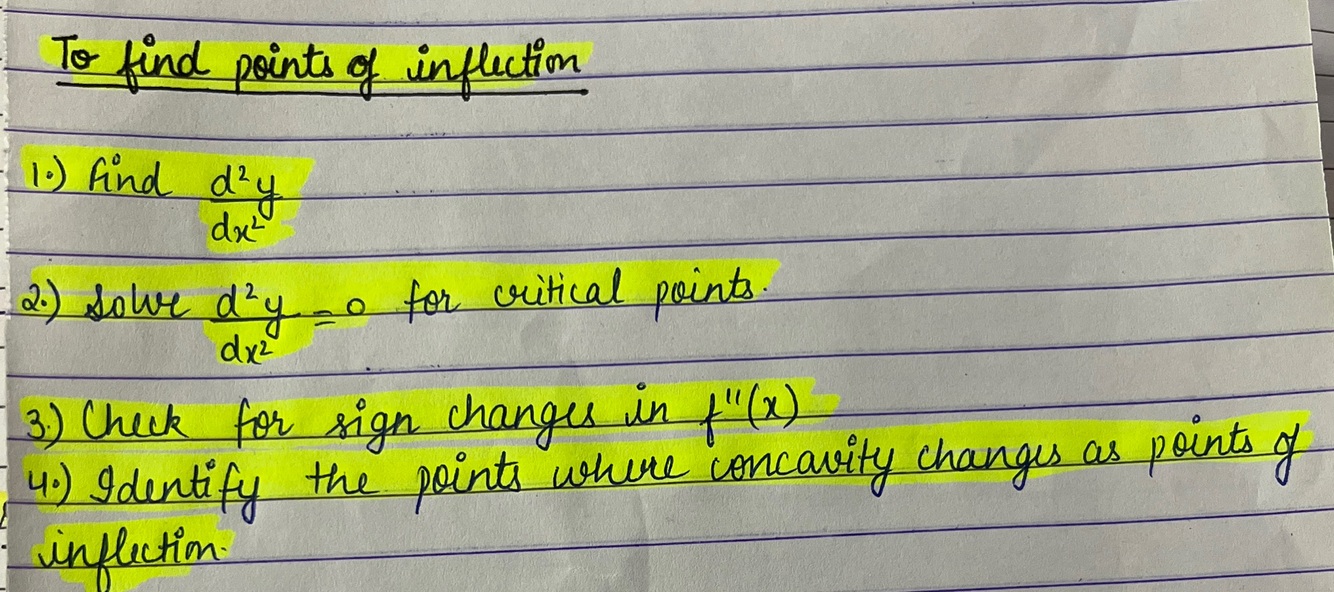 Point of inflection occur where the concavity of curve changes i.e. where f’‘(x) = 0 and sign changes.