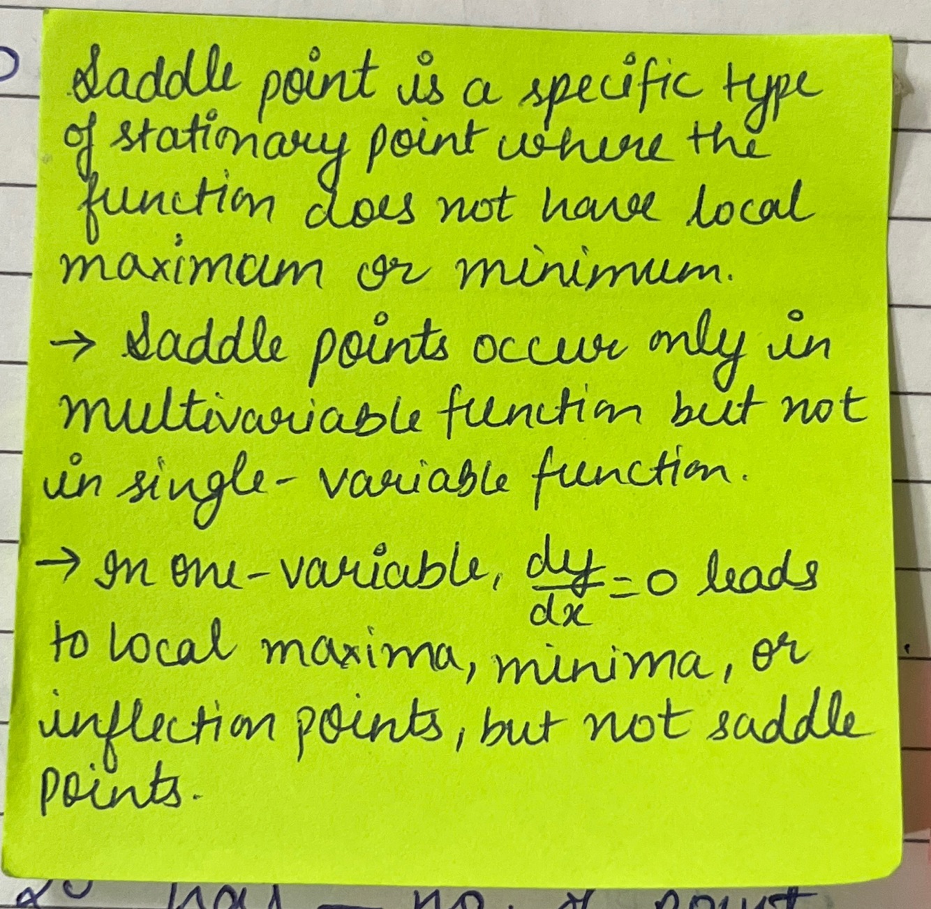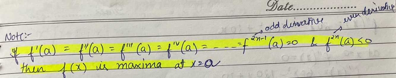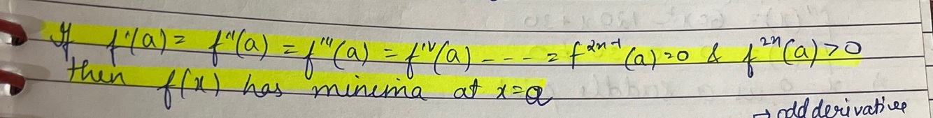 When the slope / derivative is moving from -ve to +ve, at the stationary point the function will have local maxima.