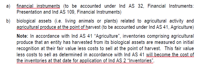 What are the scope exclusions from the standard on IND AS 2 - Inventories