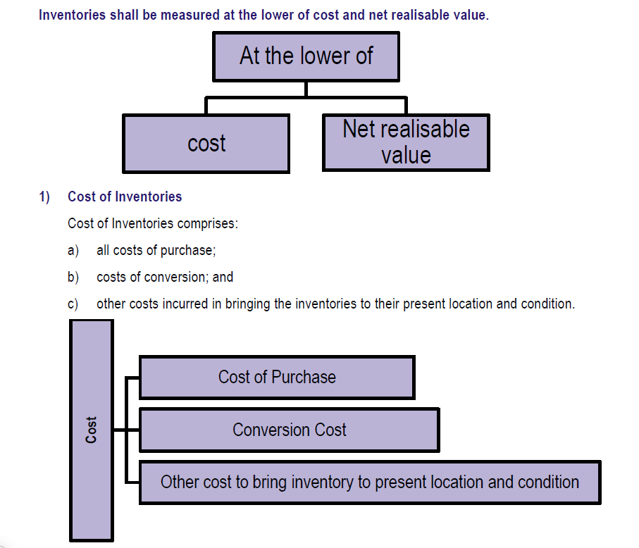 The cost and net realisable value should be compared for each separately identifiable item of inventory, or group of similar inventories, rather than for inventory in total.