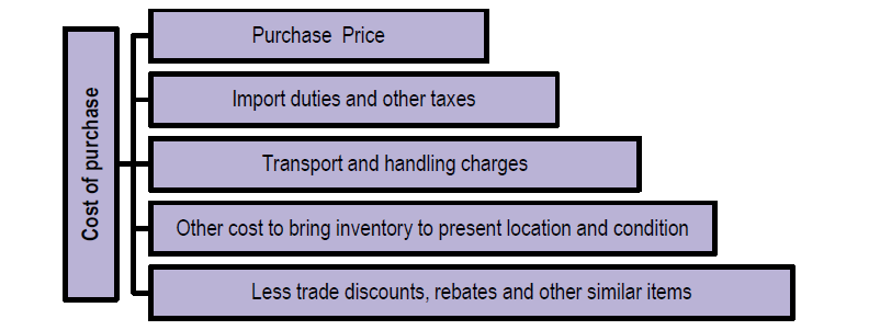 What are the Components that go into the cost of purchase of Inventories as per IND AS 2?
