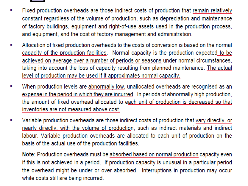 General Rule - Normal capacity in case of Fixed OH when the Actual production is less than normal Production