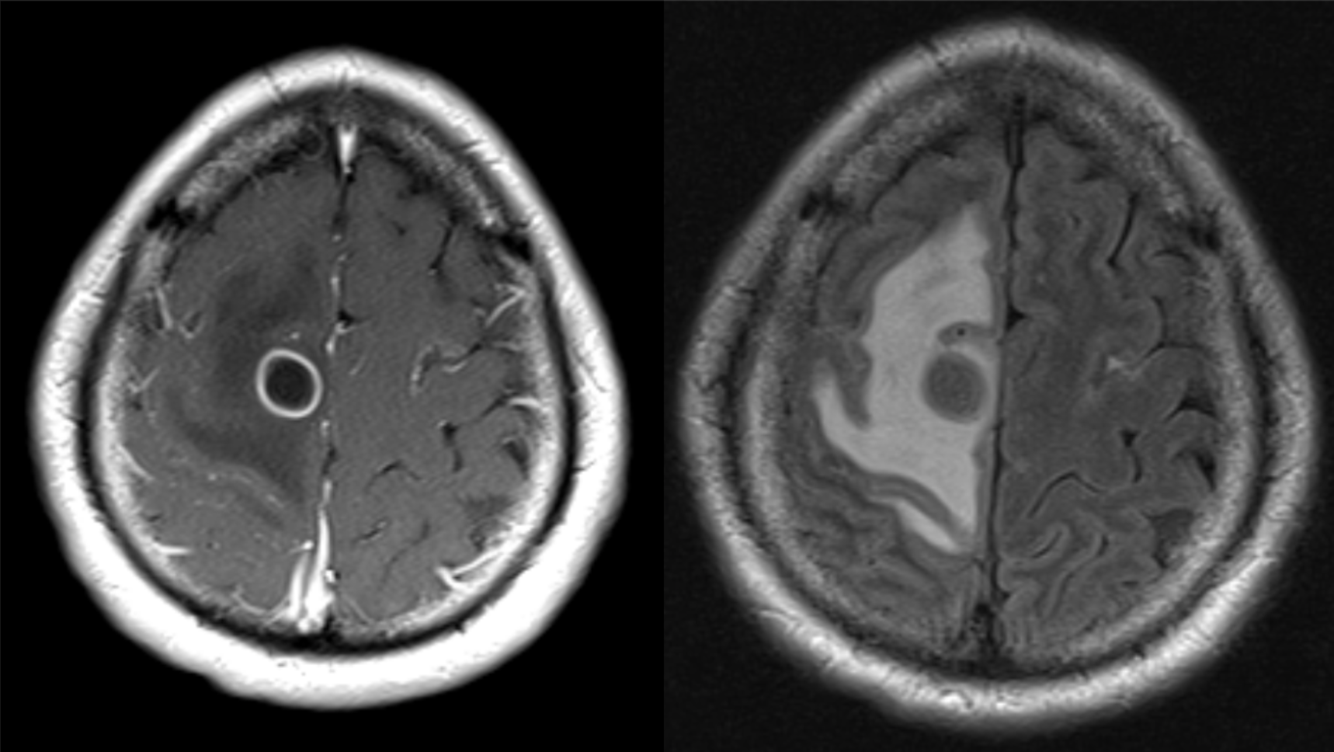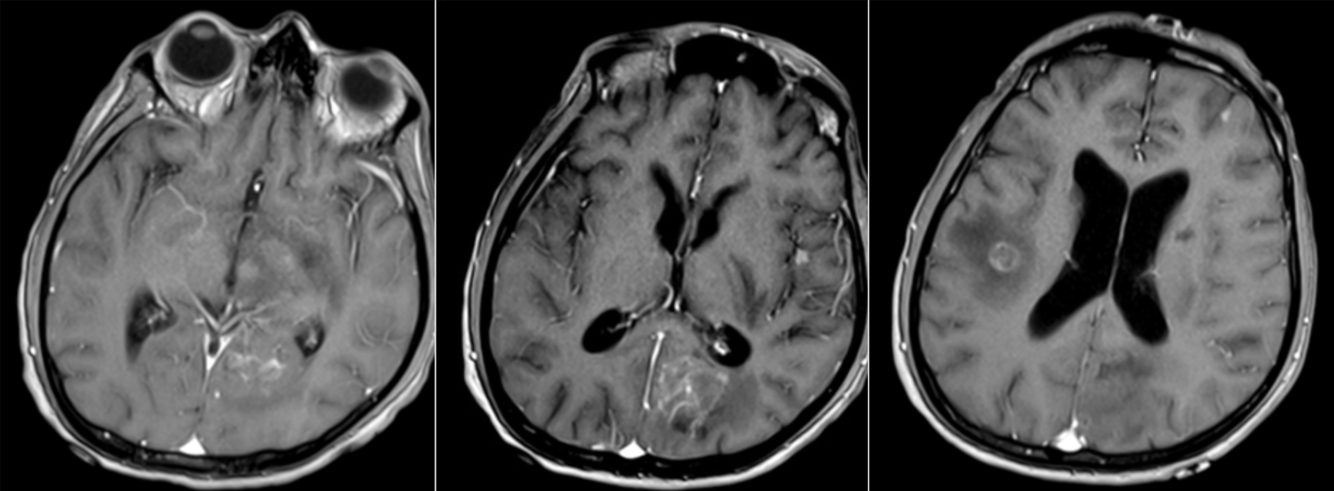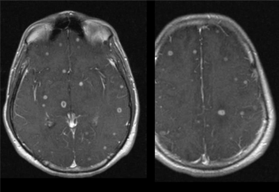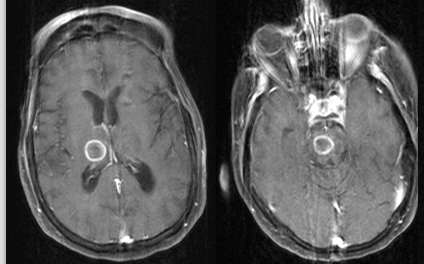 A 56 year-old immunocompromised man presented with seizures.
