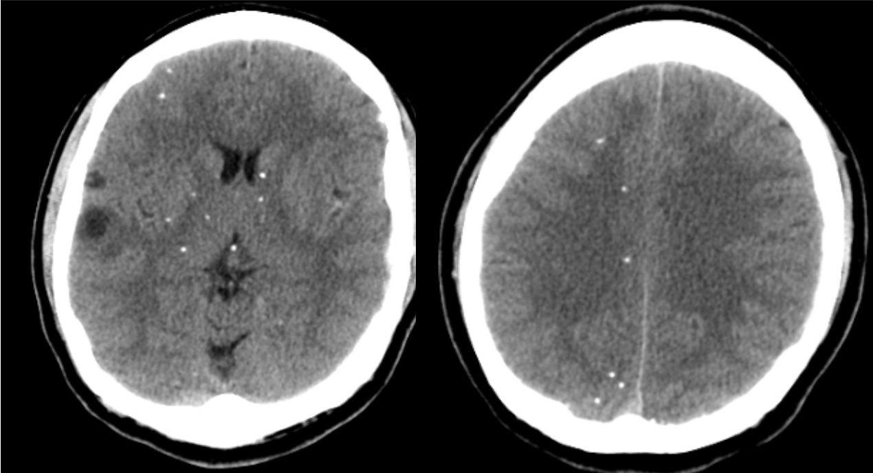 A 54 year-old man presented with headaches and weakness on his left side.