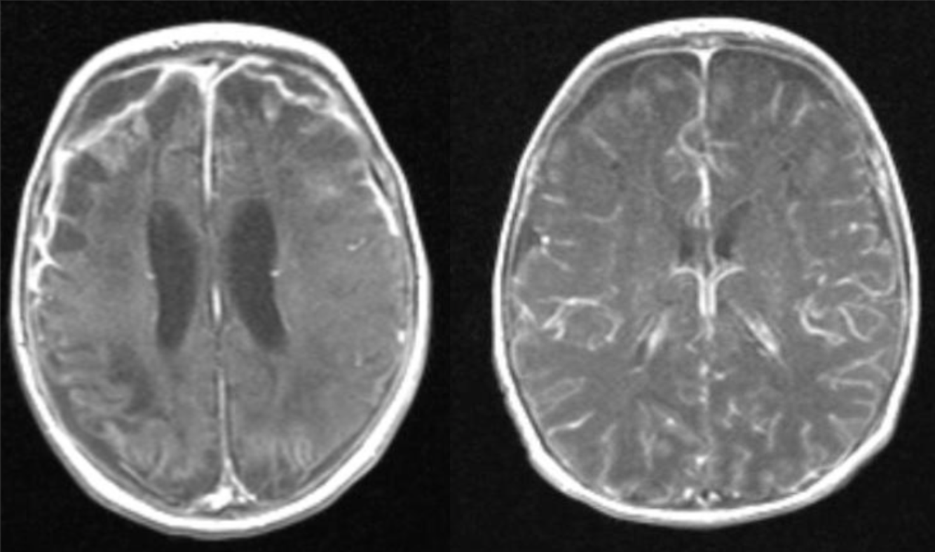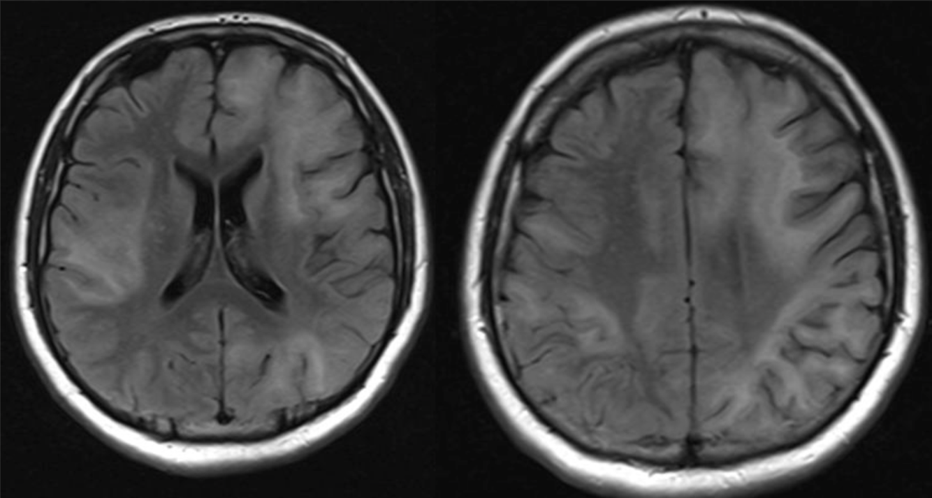 An otherwise healthy 23-year-old man presented with confusion and trouble speaking for 3 days. There was no prior trauma.
