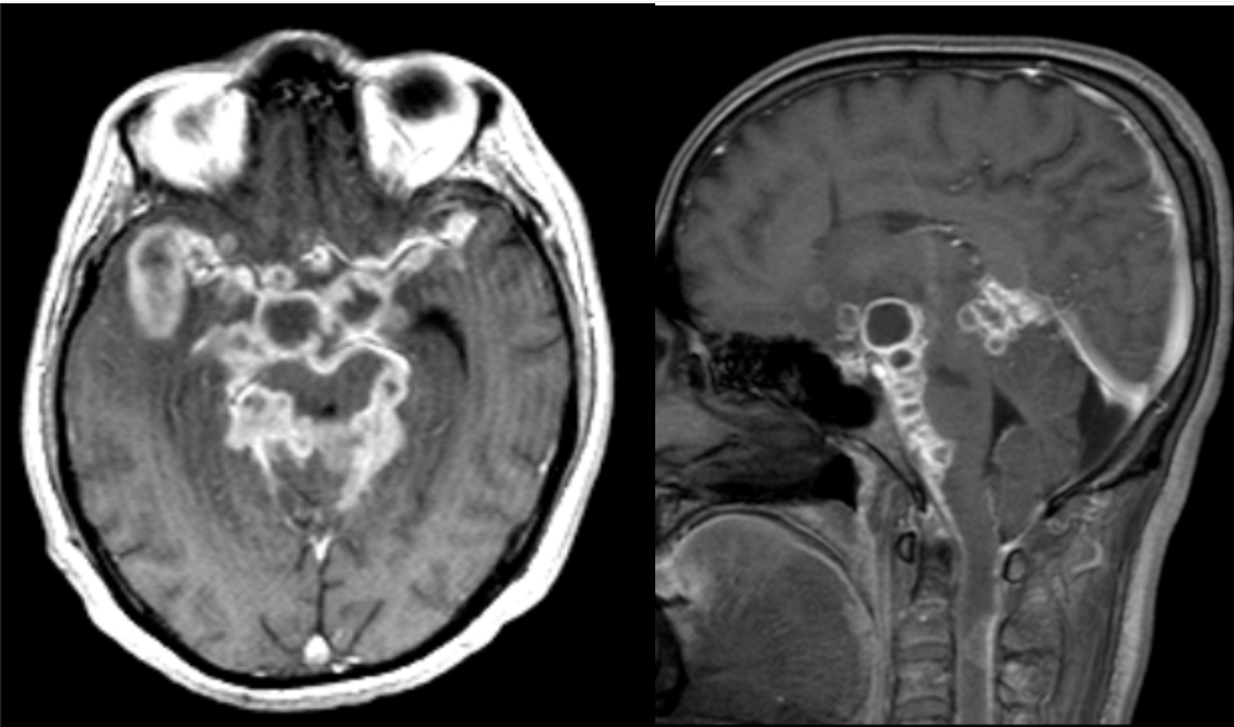 28 year-old developed cranial nerve deficits and soon became encephalopathic and died.