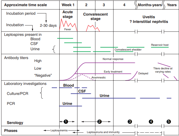 The acute leptospiremic phase is characterized by fever of 3–10 days’ duration, during which time the organism can be cultured from blood and detected by (PCR).