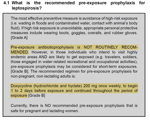 Based on CPG, recommended PRE exposure prophy for leptospirosis