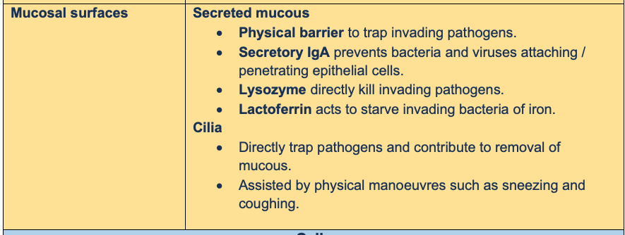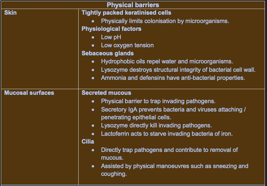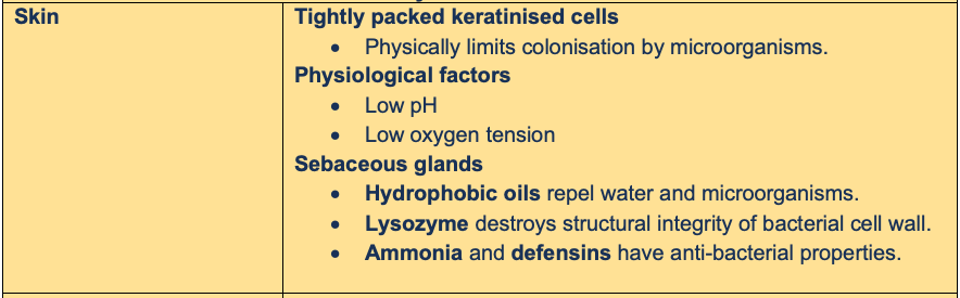 Physical barrier, physiological conditions, Glands