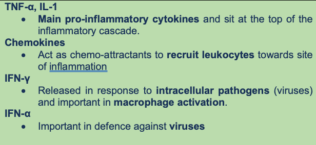 Key cytokines and their roles