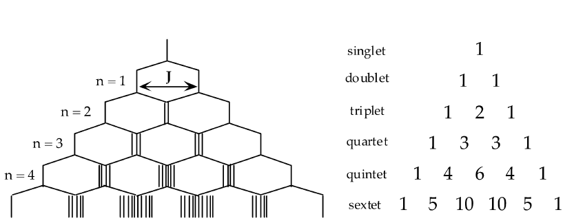 Coupling to n indentical spin 1/2 nuclei gives n+1 multiplet with binomial intensities