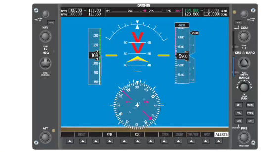 These red chevrons indicate that the aircraft is in a nose high (high pitch) unusual attitude and suggest the pilot pitch forward (bring the nose down) to get out of it.