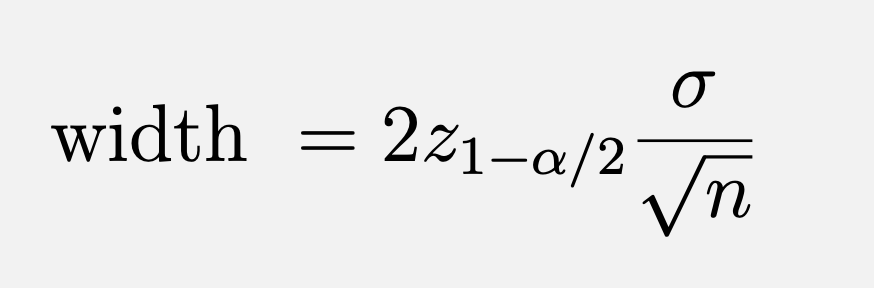 Describe the width of an approximate confidence interval for the population mean