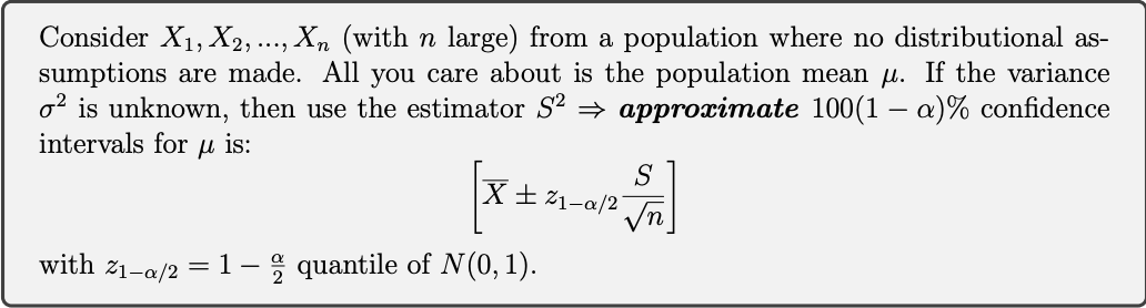 Describe how to find the confidence interval for a population mean if the distribution is not necessarily normal and we do not know the variance.