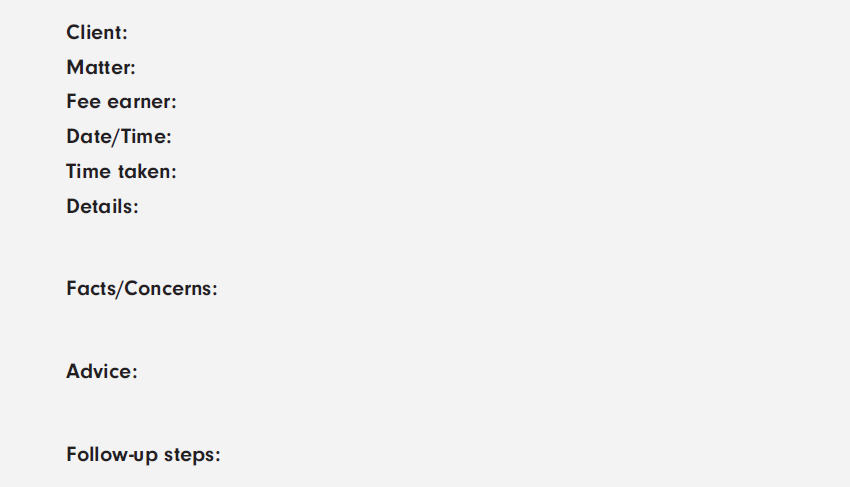 where should any outstanding matters from the client interview be noted? e.g. if you ran out of time to discuss them in the interview