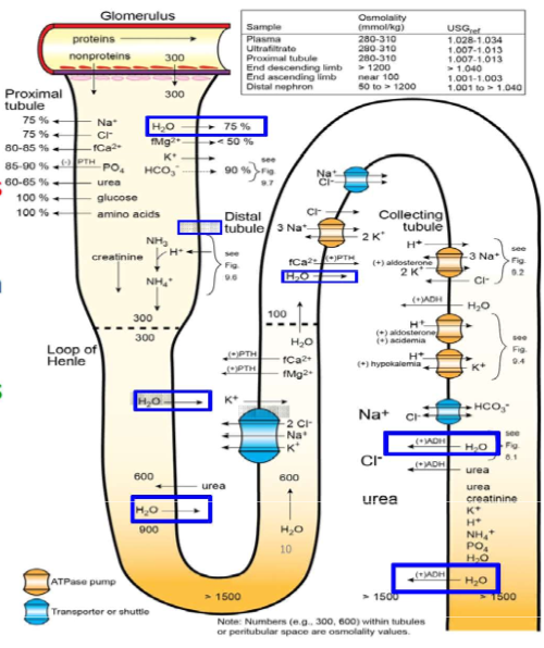 How does the kidney handle water?