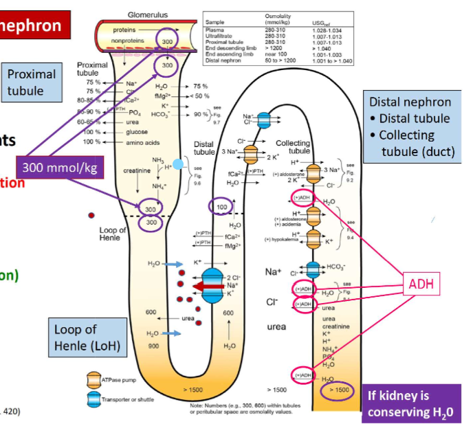 What are the major physiologic processes of the nephron?