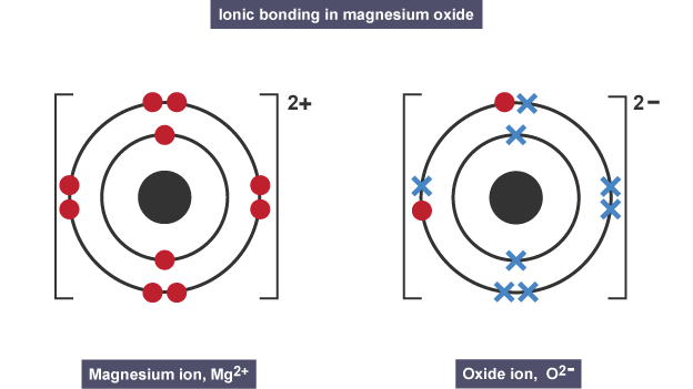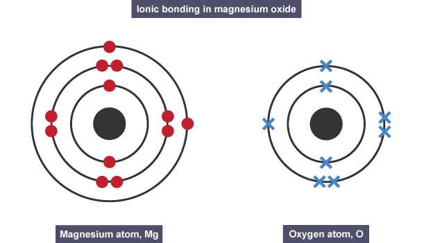 Sketch a dot-and-cross diagram to show ionic bonding between magnesium and oxygen.