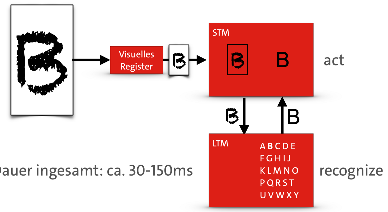 Wie nennt man den elementaren kognitiven Prozess bei dem Einheiten im LTM aktiviert werden (engl. recognize) wodurch neue Einheit im STM verfügbar oder verändert werden (engl. act)