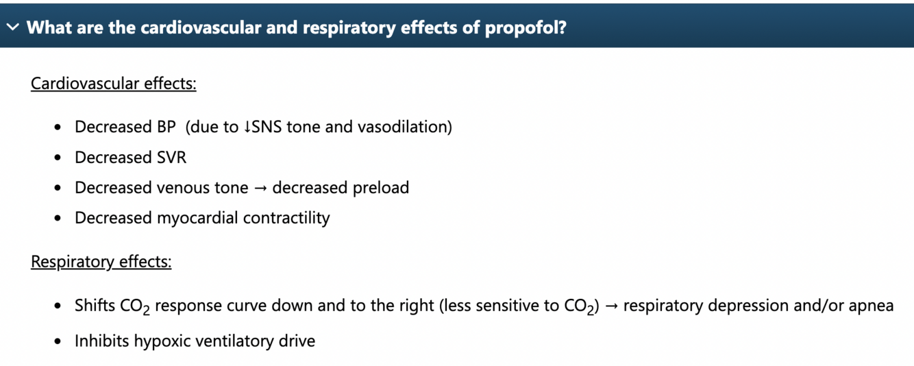 Resp/ Cardiac effects of Prop