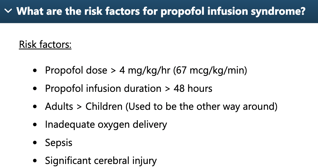 Risk factors for Prop infusion syndrome???