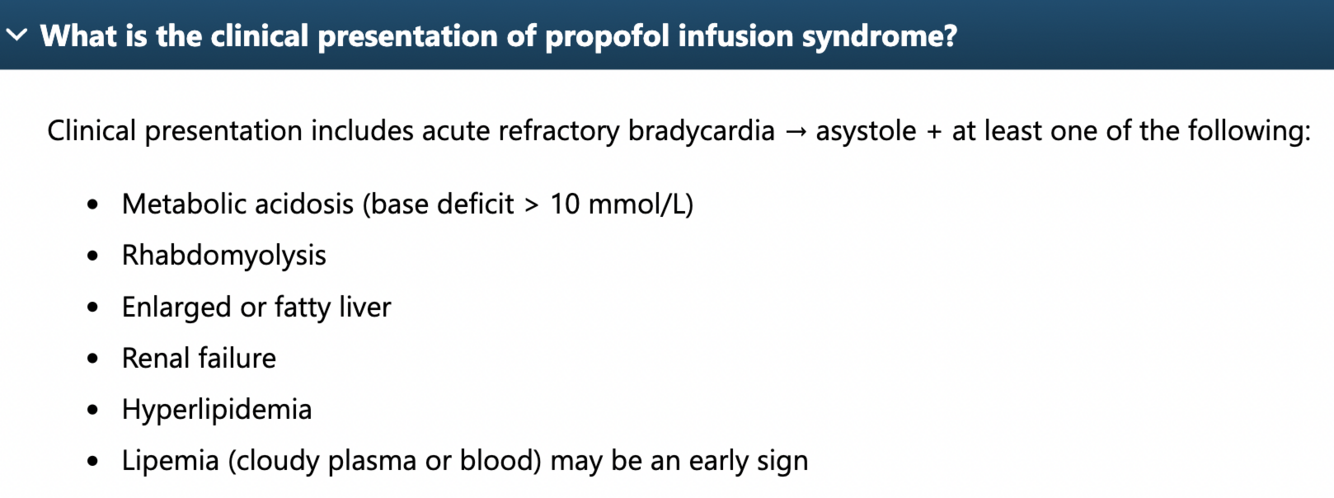 Clinical presentation for prop infusion syndrome?
