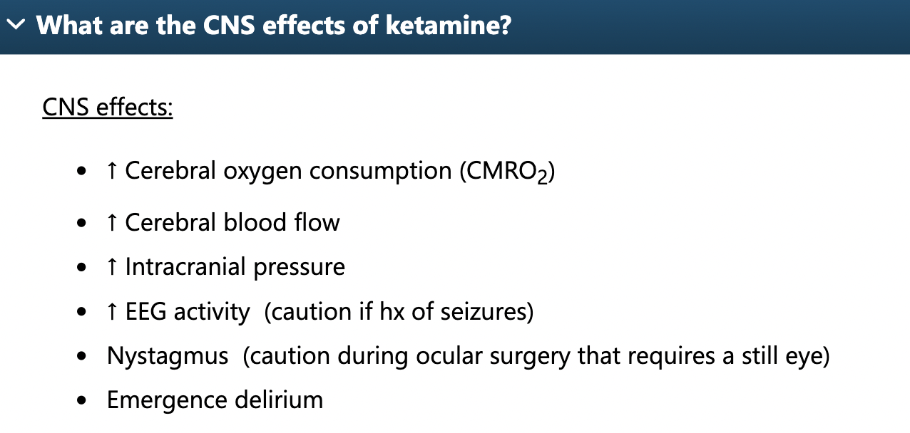 CNS effects of ketamine