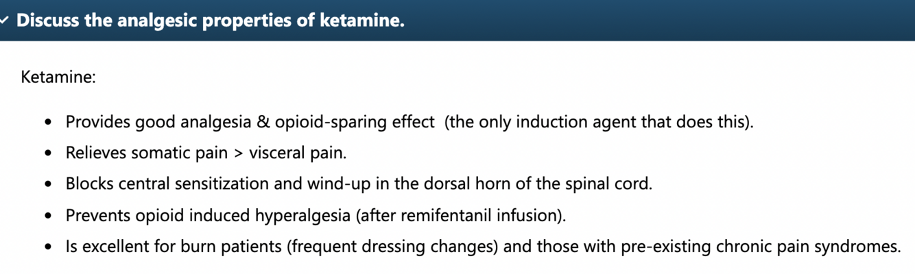 Analgesia properties of ketamine?