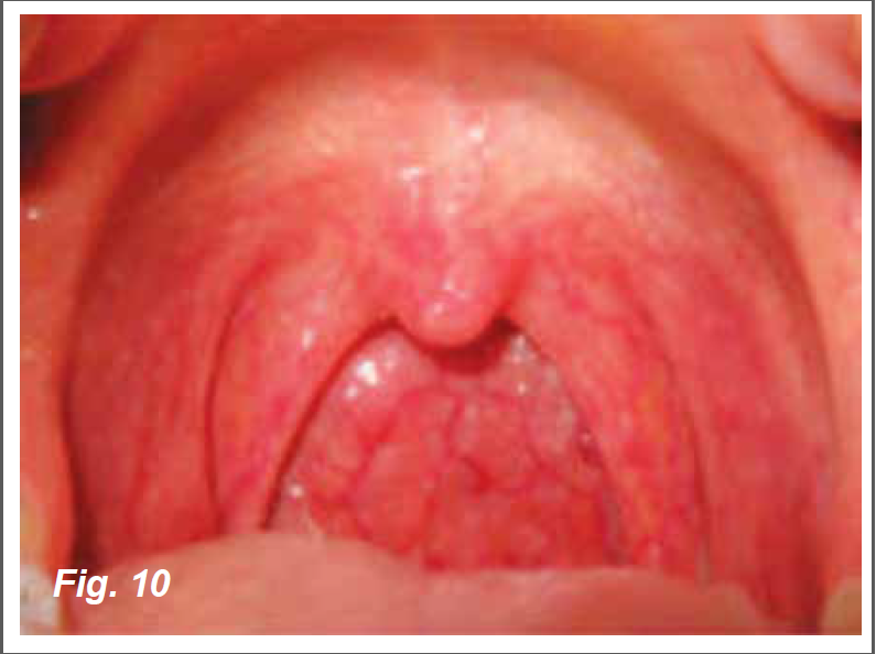 A faringite geralmente não está associada a dor intensa e odinofagia. Há dor de garganta (“coçando/arranhando”), corrimento nasal, tosse, mal-estar, anorexia e febre. Ou seja, um quadro de nasofaringite + sistêmico. Há eritema e edema da faringe, podendo conter exsudato. Pode haver poliadenopatia. Não dura mais que 5 dias.