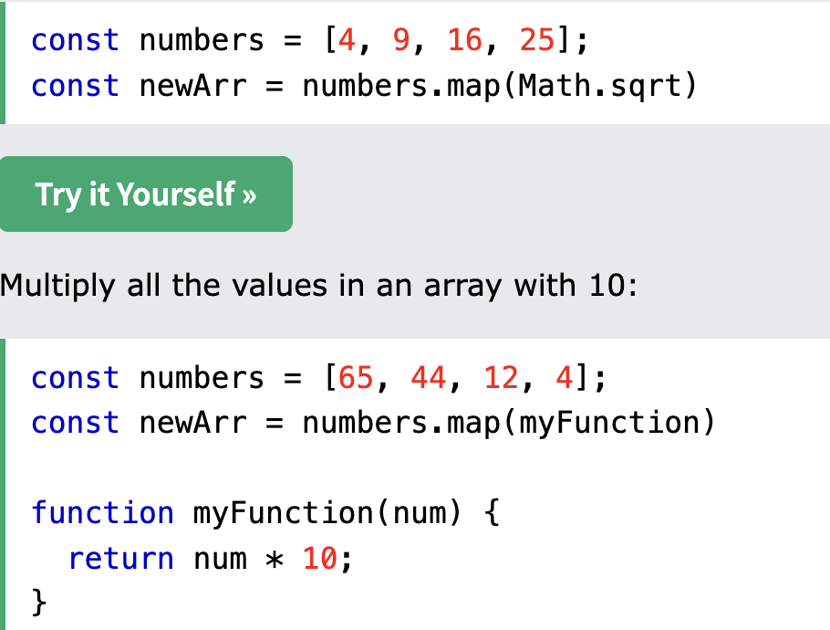 What is the purpose of the ‘map’ method in JavaScript arrays?