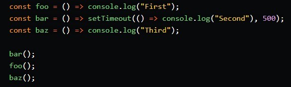 Looking at the provided image, in what order will the returns of foo, bar, and baz print to the console?
