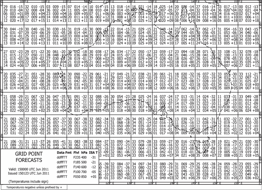 1. Latitude 10-50° S, Longitude 100-160° E for FL385, FL340, FL300, FL235, FL185 valid