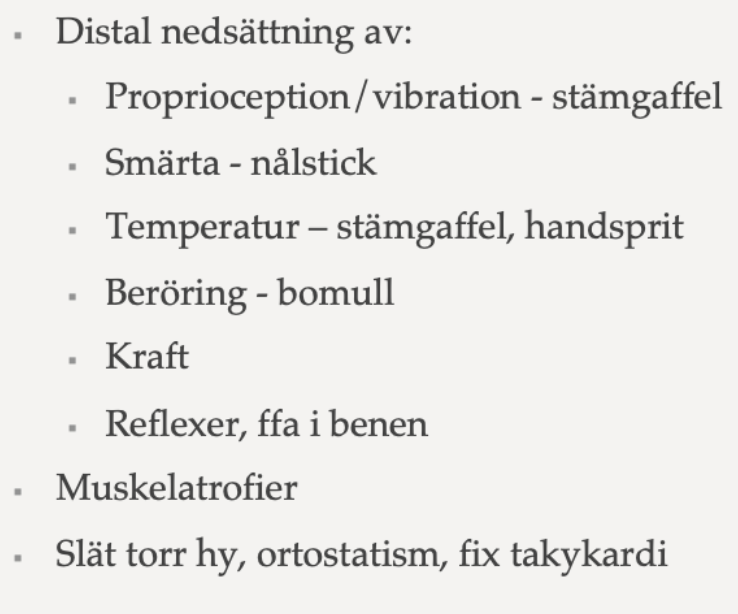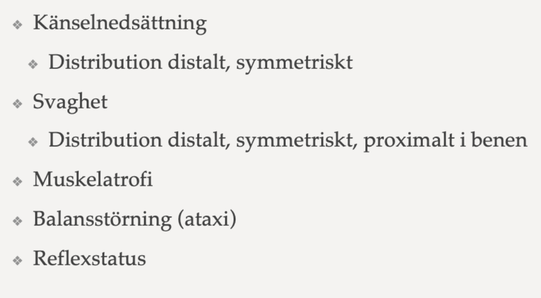 Vilka statusfynd kan man göra hos patienter med PNP? (2p)