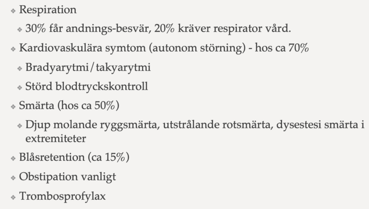 Vilka symptom kan man se hos Guillain barre syndrom? (3p)